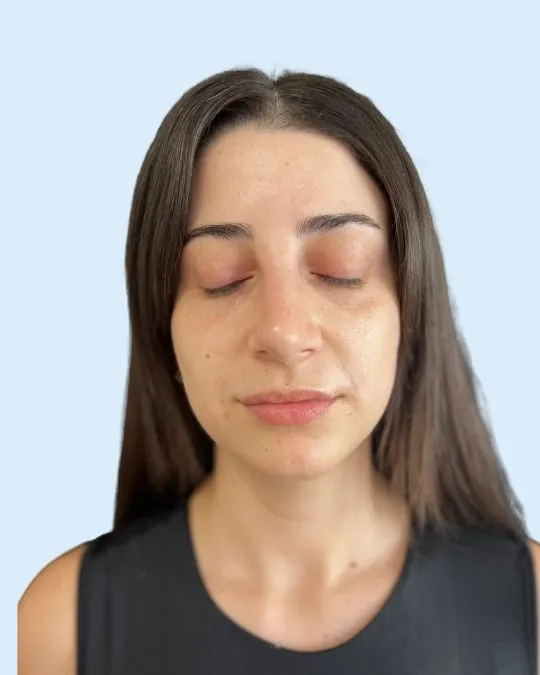 Hastamıza tek seans BTL Exion Face uygulanarak özellikle elmacık hattında sıkılaşma ve dolgunluk elde edilmiş, kaz ayaklarında ise incelme ve düzleşme gözlemlenmiştir. Not: Optimal sonuç için 4 seans uygulanması tavsiye edilir